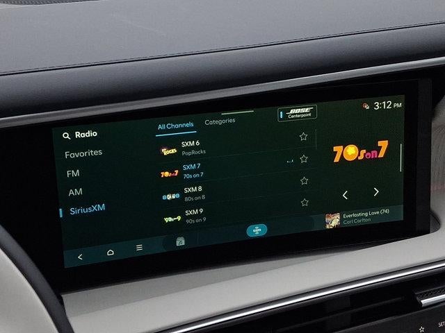 - Radio: Infotainment Navigation System -inc: Bose 14-speaker premium audio system w/Centerpoint and SoundTrue enhanced technology, 12.3" color touchscreen, wireless Apple CarPlay and Android Auto, HD Radio, Sirius XM, Passenger Talk 2.0 in-car intercom system, dynamic voice recognition, rear seat quiet mode, Bluetooth® hands-free w/wireless audio streaming, multiple device connection (up to 2 devices), USB connectivity, Bluelink + connected car services, Wi-Fi hotspot, steering wheel audio controls and Over-the-Air (OTA) software updates