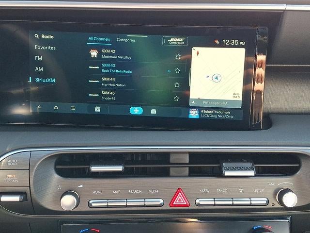 - Radio: Infotainment Navigation System -inc: Bose 14-speaker premium audio system w/Centerpoint and SoundTrue enhanced technology, 12.3" color touchscreen, wireless Apple CarPlay and Android Auto, HD Radio, Sirius XM, Passenger Talk 2.0 in-car intercom system, dynamic voice recognition, rear seat quiet mode, Bluetooth® hands-free w/wireless audio streaming, multiple device connection (up to 2 devices), USB connectivity, Bluelink + connected car services, Wi-Fi hotspot, steering wheel audio controls and Over-the-Air (OTA) software updates