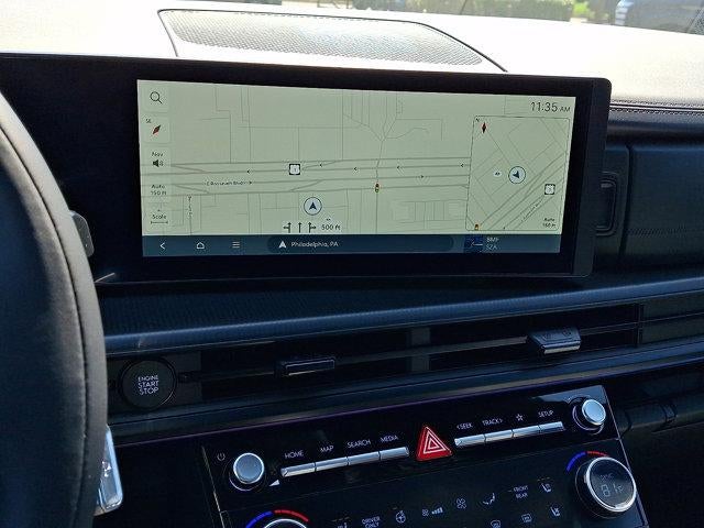 - Radio: AM/FM/HD Bose Premium Audio System -inc: 12 speakers including subwoofer, external amplifier, 12.3" wide touchscreen, wireless Apple CarPlay and Android Auto, Bluetooth® hands-free w/wireless audio streaming, dynamic voice recognition, USB connectivity, SiriusXM, wifi hotspot, Blue Link connected car system, navigation system including traffic flow w/incident data via HD Radio (HERE), OTA updates and rear seat quiet mode