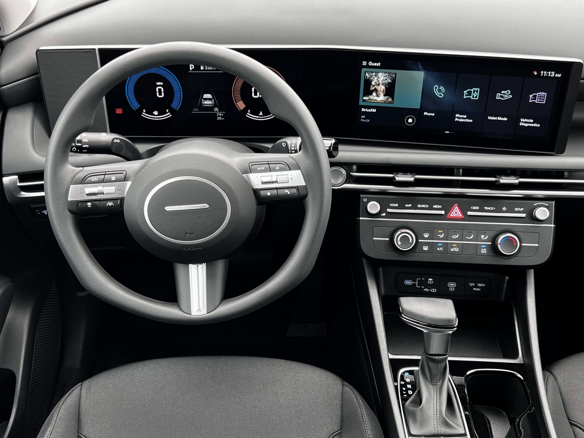 - Radio: AM/FM/HD Audio System -inc: 12.3" color touchscreen display, 6 speakers, SiriusXM satellite radio system (3-month trial subscription), wireless Apple CarPlay and Android Auto integration, controller OTA update capability, Blue Link connected car system and USB connectivity