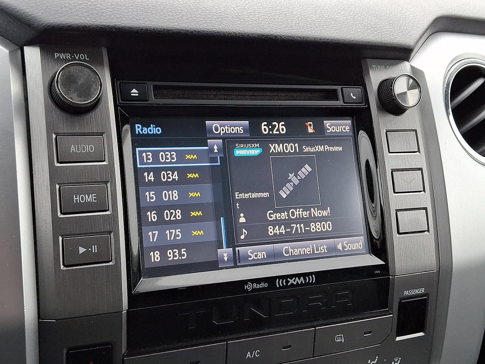 - Radio: Entune Audio Display AM/FM/HD w/CD Player -inc: MP3/WMA playback capability, high-resolution 7" touch-screen display, auxiliary audio jack, USB 2.0 port, iPod connectivity and control, iTunes Tagging, traffic and weather, Bluetooth® hands-free phone capability, phone book access, voice recognition and music streaming, SIRIUSXM Satellite Radio, 90-day free trial