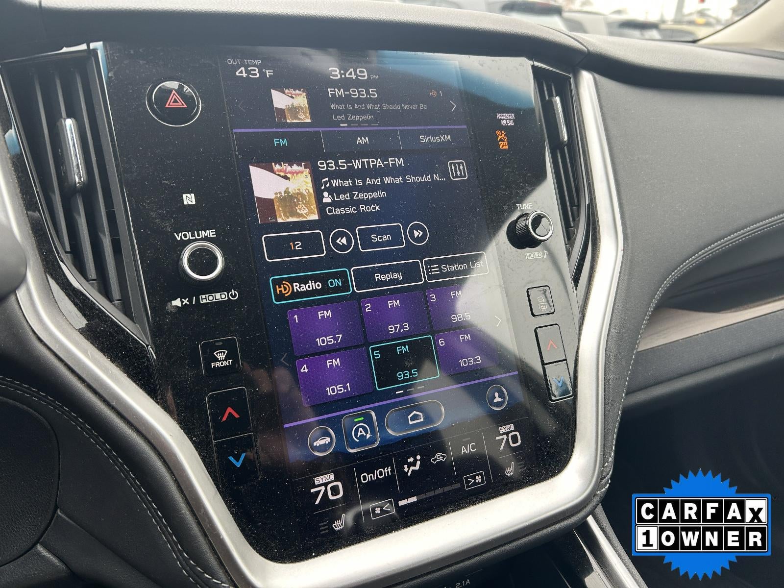 - Radio: Subaru STARLINK 11.6" Multimedia Plus Sys -inc: AM/FM stereo, HD Radio, voice activated controls, Bluetooth® audio streaming and hands-free phone connectivity w/SMS text messaging (applicable w/compatible cellphone), Near Field Communication (NFC), iPod control capability, SiriusXM All Access radio (subscription required), SiriusXM Travel Link (subscription required), smartphone integration: Android Auto, CarPlay and STARLINK cloud applications, 6 speakers, 3.5mm auxiliary input jack and dual USB input ports