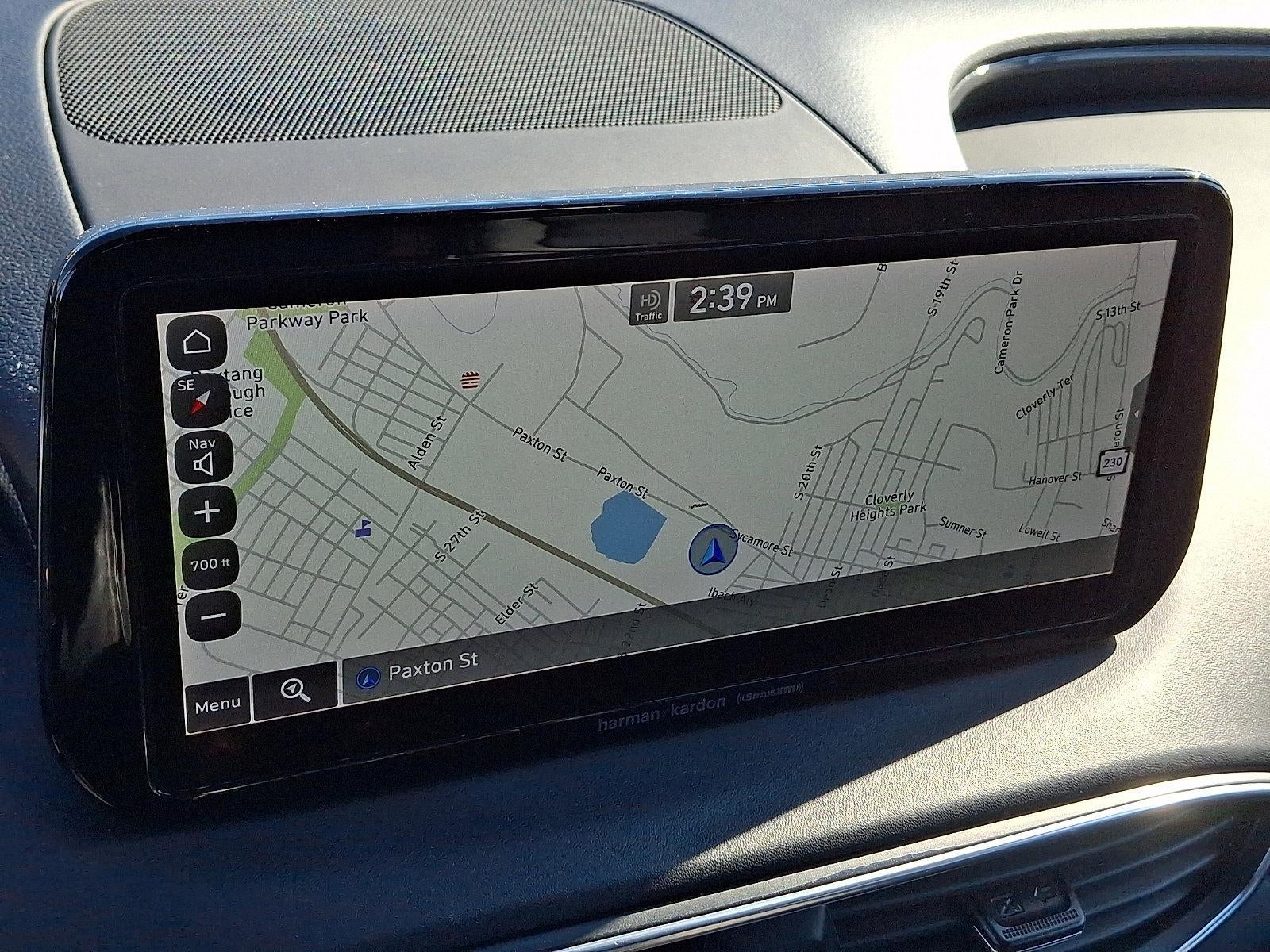 - Radio: AM/FM/MP3 Harman Kardon Display Audio -inc: 630 Watts, 10.25" wide touchscreen, Apple CarPlay and Android Auto, Bluetooth® hands-free w/wireless audio streaming, voice recognition, steering wheel audio, cruise and phone controls, dual front USB ports, SiriusXM, HD Radio, Blue Link connected car system, 12 speakers including subwoofer, external amplifier, Clari-Fi music restoration technology, QuantumLogic surround, onboard navigation system w/traffic flow including incident data via HD Radio (HERE), rear seat quiet mode and wireless device charging