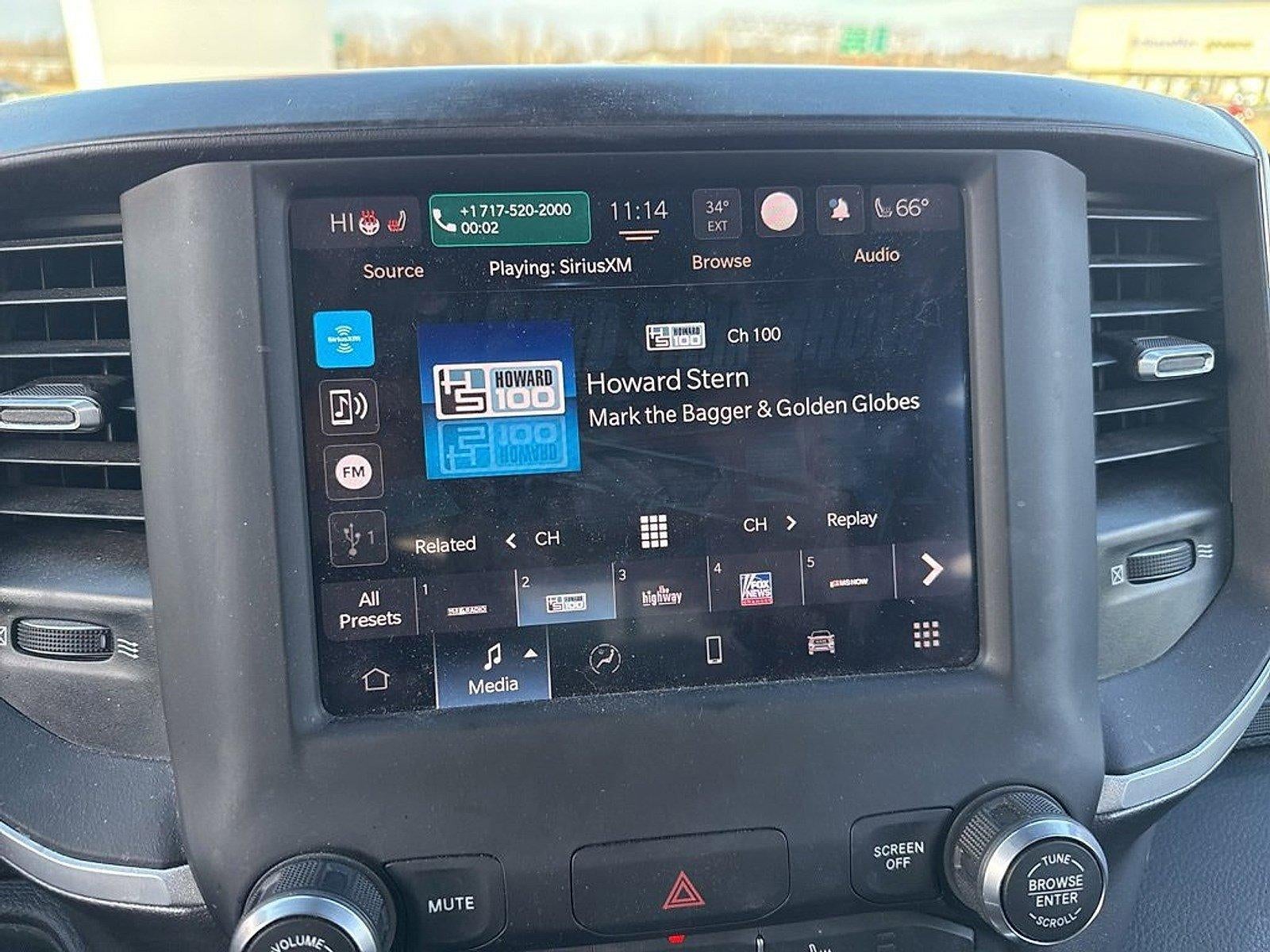 CARFAX One-Owner, Local Trade, Non-Smoker, 115V Auxiliary Power Outlet, 115V Auxiliary Rear Power Outlet, 2nd Row In Floor Storage Bins, 3 Rear Seat Head Restraints, 4 Way Front Headrests, 4-Wheel Disc Brakes, 400W Inverter, 48V Belt Starter Generator, 4G LTE Wi-Fi Hot Spot, 8.4" Touchscreen Display, ABS brakes, Air Conditioning ATC w/Dual Zone Control, Anti-Spin Differential Rear Axle, Apple CarPlay, Auto-Dimming Exterior Driver Mirror, Auto-Dimming Rear-View Mirror, Big Horn Badge, Big Horn Level 2 Equipment Group, Black Exterior Mirrors, Black Exterior Truck Badging, Black Headlamp Bezels, Black Interior Accents, Black Premium Power Mirrors, Bluetooth® Handsfree Phone & Audio, Body Color Front Bumper, Body Color Rear Bumper w/Step Pads, Brake assist, Bucket Seats, Class IV Receiver Hitch, Cluster 7.0" TFT Color Display, Connectivity - US/Canada, Convex Wide-Angle Mirror Insert, Delete LED Lamp - Floor Console Bin, Deluxe Cloth Bucket Seats, Dual Exhaust w/Black Tips, Dual front impact airbags, Dual front side impact airbags, Electronic Stability Control, Emergency communication system: SiriusXM Guardian, Exterior Mirrors Courtesy Lamps, Exterior Mirrors w/Heating Element, Exterior Mirrors w/Supplemental Signals, For Details, Visit DriveUconnect.com, Front anti-roll bar, Front fog lights, Front Seat Back Map Pockets, Front wheel independent suspension, Full Length Floor Console, Global Telematics Box Module (TBM), Glove Box Lamp, Google Android Auto, GPS Antenna Input, Heated door mirrors, Heated Front Seats, Heated Steering Wheel, Integrated Center Stack Radio, Leather steering wheel, Low tire pressure warning, Manual Adjust 4-Way Front Passenger Seat, Media Hub w/2 Charge Only USBs, Night Edition (DISC), Occupant sensing airbag, Overhead airbag, ParkSense Front/Rear Park Assist w/Stop, ParkView Rear Back-Up Camera, Power 2-Way Driver Lumbar Adjust, Power 8-Way Driver Seat, Power Adjustable Pedals, Power-Folding Mirrors, Quick Order Package 23Z Big Horn, Radio: Uconnect 5 W w/8.4" Display, Rear 60/40 Folding Seat, Rear anti-roll bar, Rear Center Armrest, Rear Dome w/On/Off Switch Lamp, Rear Power Sliding Window, Rear Window Defroster, Remote Start System, Security Alarm, SiriusXM Radio Service, SiriusXM Satellite Radio, Speed control, Split folding rear seat, Sun Visors w/Illuminated Vanity Mirrors, Traction control, Universal Garage Door Opener, USB Host Flip, Voltmeter, Wheels: 20" x 9.0" Premium Paint/Polished (DISC). CARFAX One-Owner.