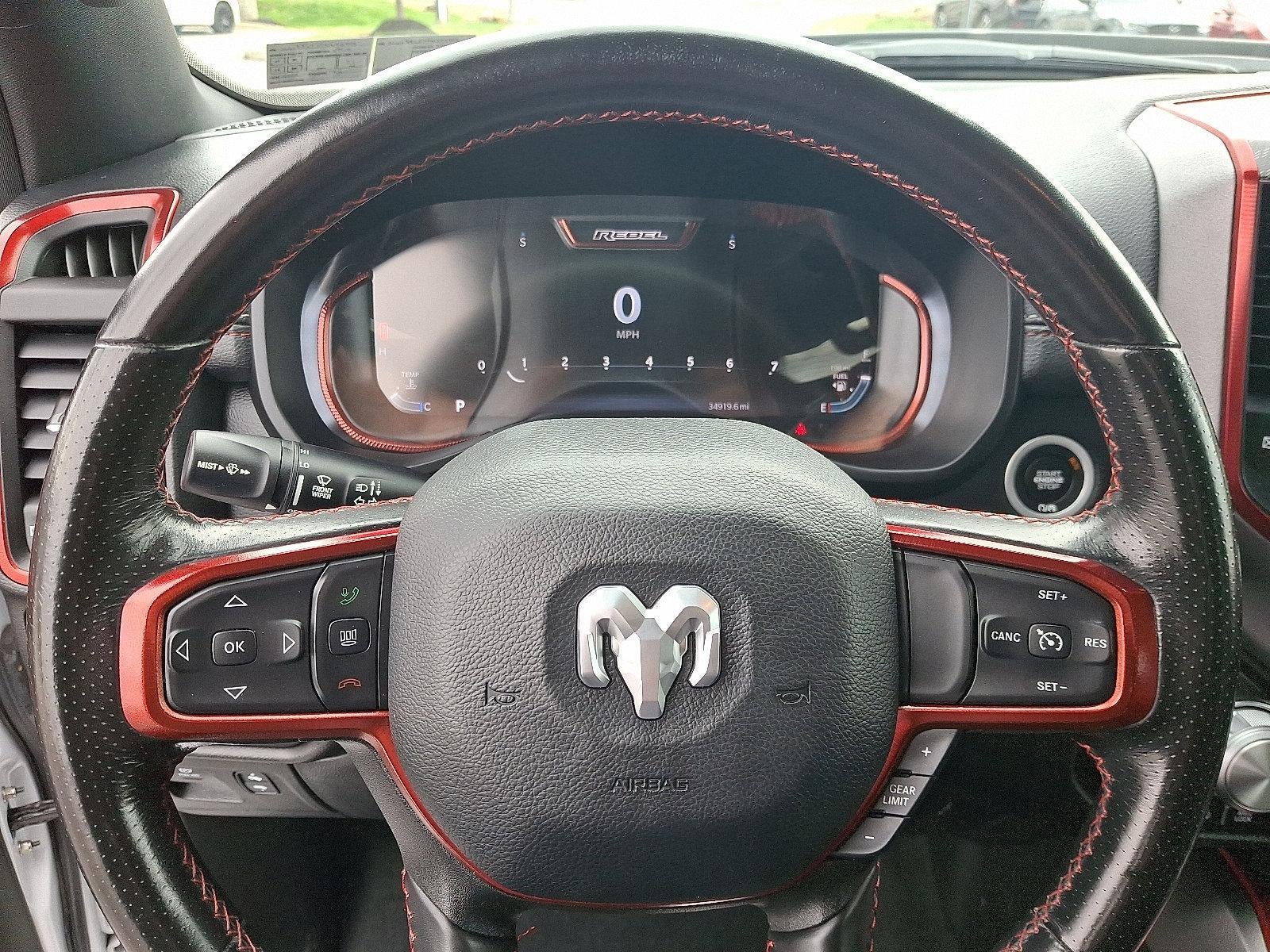 *Backup Camera*, *Bluetooth® Hands-Free Calling*, *Built-in USB ports*, *Heated Seats*, *Heated Steering Wheel*, *Push Button Start*, *Alloy Wheels*, *Apple Car Play*, *Android Auto*, *Multizone Climate Systems*, *Tire Pressure Monitoring System*, *Touch-Screen Display*, 1500 Rebel, HEMI 5.7L V8 Multi Displacement VVT eTorque, 4WD, 12" Touchscreen Display, 2nd Row In Floor Storage Bins, 4-Wheel Disc Brakes, 4G LTE Wi-Fi Hot Spot, 9 Amplified Speakers w/Subwoofer, ABS brakes, AM/FM radio: SiriusXM with 360L, Apple CarPlay, Apple CarPlay/Android Auto, Auto-Dimming Exterior Driver Mirror, Auto-dimming Rear-View mirror, Automatic temperature control, Black Exterior Mirrors, Black Premium Power Mirrors, Class IV Receiver Hitch, Cloth/Vinyl Low Back Bucket Seats, Connected Travel & Traffic Services, Convex Wide-Angle Exterior Mirror Insert, Emergency communication system: SiriusXM Guardian, Exterior Mirrors Courtesy Lamps, Exterior Mirrors w/Heating Element, Exterior Mirrors w/Supplemental Signals, Front fog lights, Google Android Auto, GPS Antenna Input, GPS Navigation, Heated door mirrors, Heated Front Seats, Heated Steering Wheel, Integrated Voice Command w/Bluetooth®, Navigation System, Off-Road Information Pages, ParkView Rear Back-Up Camera, Power 8-Way Driver Seat, Power Adjustable Pedals, Power-Folding Mirrors, Quick Order Package 27W Rebel, Radio: Uconnect 5 Nav w/12.0" Display, Rear Dome w/On/Off Switch Lamp, Rear Power Sliding Window, Rear Window Defroster, Rebel Level 1 Equipment Group, Remote Start System, SiriusXM Radio Service, SiriusXM w/360L, Sun Visors w/Illuminated Vanity Mirrors, Universal Garage Door Opener, USB Host Flip, Wheels: 18" x 8.0" Painted Mid-Gloss Black.