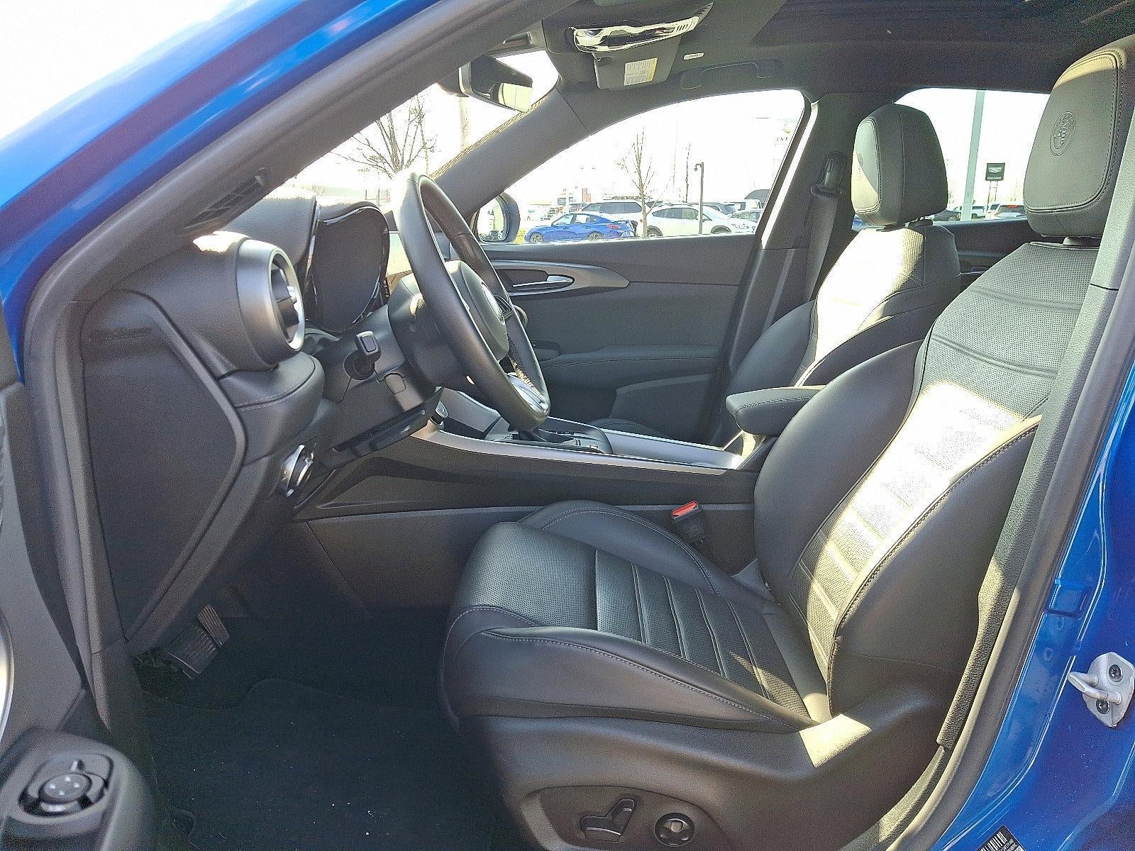 Step inside and experience refined Italian craftsmanship. The cabin features black perforated leather seating, with available heated and ventilated front seats, a heated leather sport steering wheel, and configurable ambient lighting that creates a sophisticated atmosphere. The driver-focused cockpit is highlighted by a 12.3-inch full TFT digital cluster and 10.25-inch Uconnect 5 NAV touchscreen, offering intuitive access to navigation, vehicle controls, and seamless Apple CarPlay and Android Auto integration. A Harman Kardon premium audio system delivers rich, immersive sound for every journey.