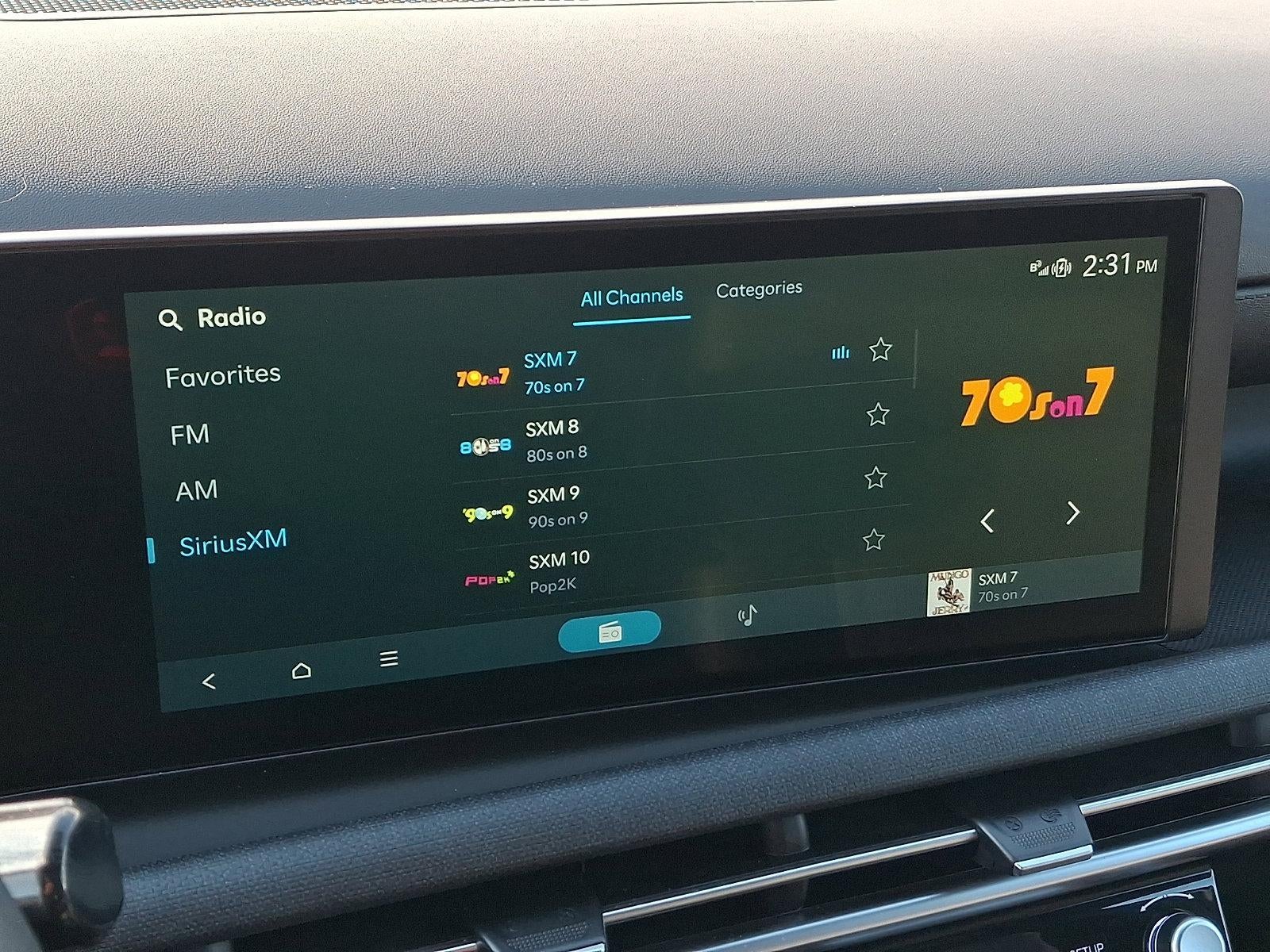 - Radio: AM/FM/HD Audio System -inc: 12.3" color touchscreen display, 6 speakers, SiriusXM satellite radio system (3-month trial subscription), wireless Apple CarPlay and Android Auto integration, controller OTA update capability, Blue Link connected car system and USB connectivity